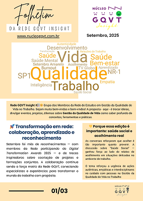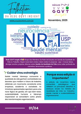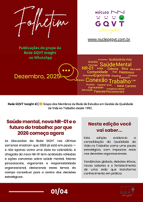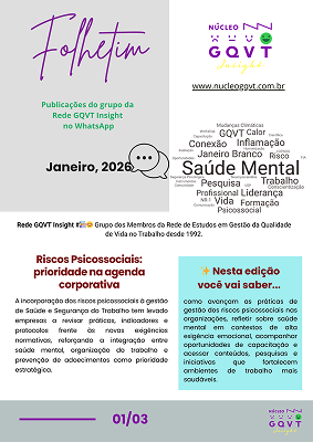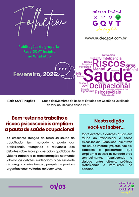 A edição de fevereiro destaca a ampliação da saúde ocupacional a partir do debate sobre riscos psicossociais e bem-estar no trabalho. Reunindo eventos, pesquisas, iniciativas e reflexões compartilhadas pela Rede, o folhetim evidencia a importância de integrar ciência, práticas organizacionais e novas abordagens — como tecnologia, ergonomia e saúde mental — para enfrentar os desafios contemporâneos do trabalho. Um panorama que reforça a evolução da agenda de Qualidade de Vida no Trabalho e o papel estratégico da gestão nesse contexto.
